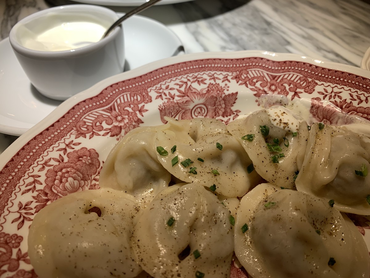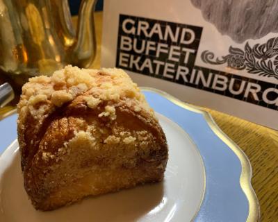 - Обед в «Гранд Буфете» — по желанию и не входит в стоимость, но я рекомендую отнестись к нему не только как к приятному, но и важному элементу знакомства с локальной кухней и культурой: бульон с пирожком, уральские мясные пельмени с талицкой сметаной, кекс свердловский или слойка свердловская и чай — 1750 ₽ на чел.