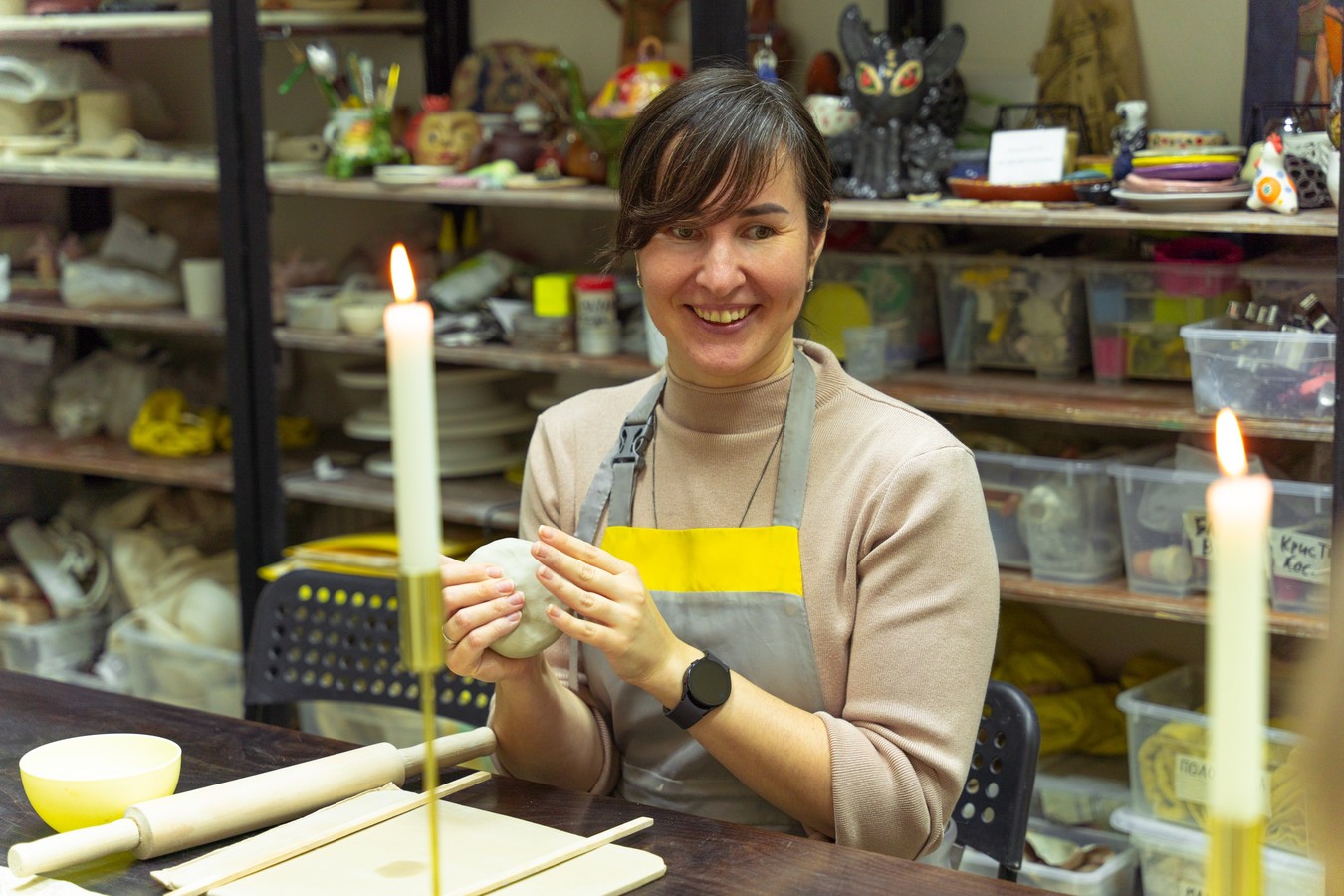 Вы можете выбрать — лепить на гончарном круге или вручную. Как правило, гости успевают слепить что-то одно: кружку, тарелку, миску, вазочку, подставку под украшение, подсвечник.