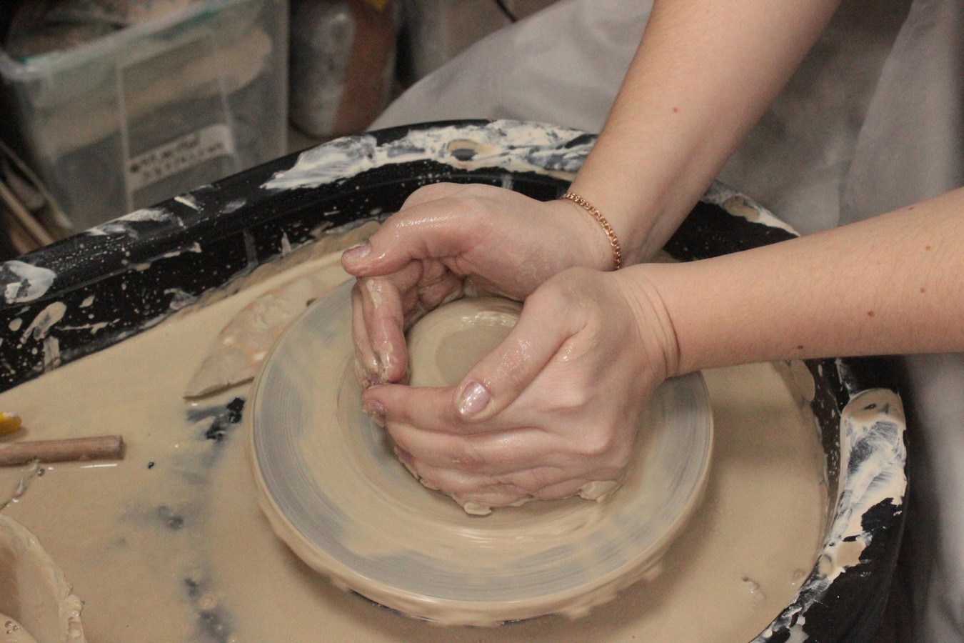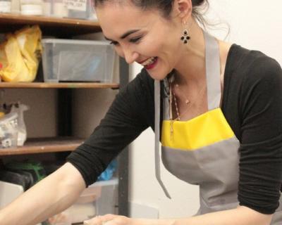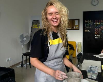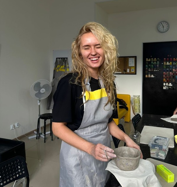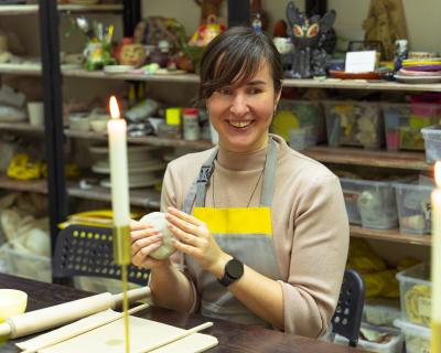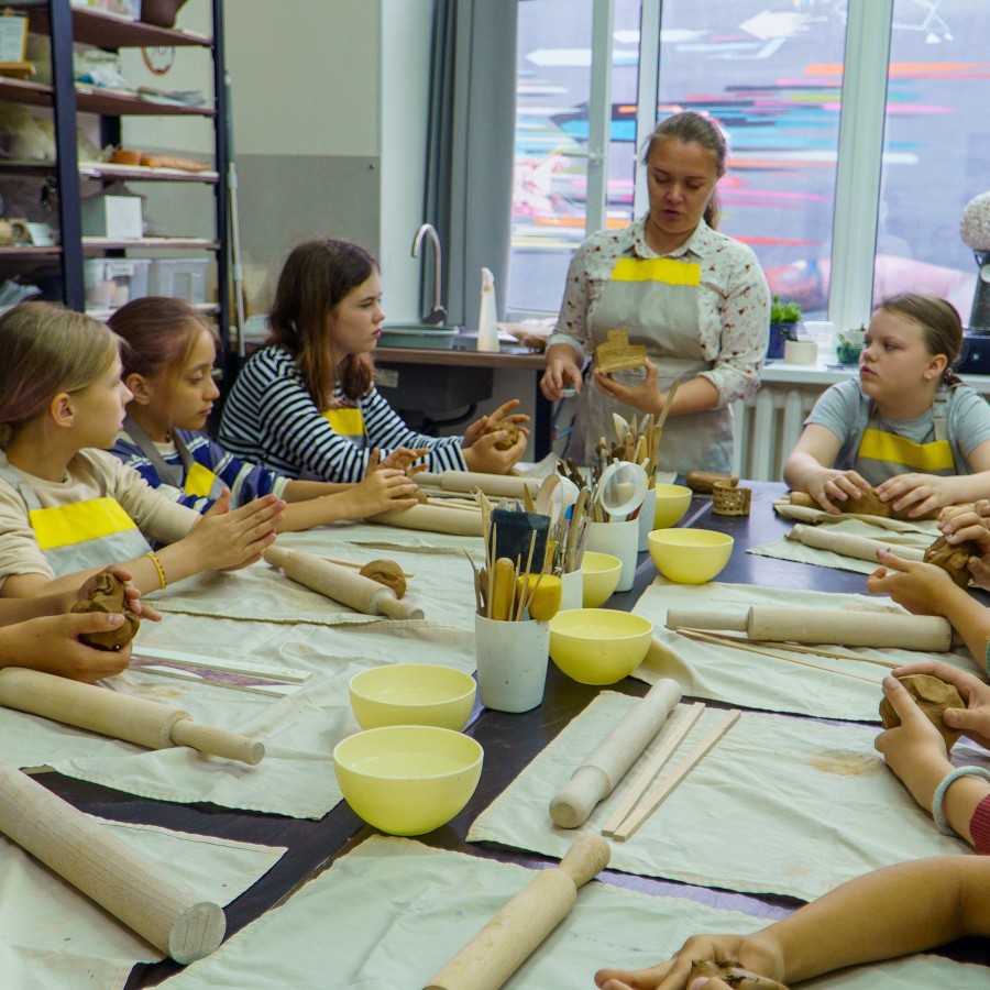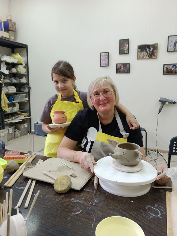 - На занятие нужно одеться удобно, для работы за гончарным кругом девочкам, девушкам и дамам лучше надеть штаны. Мы выдадим защитные непромокаемые фартуки