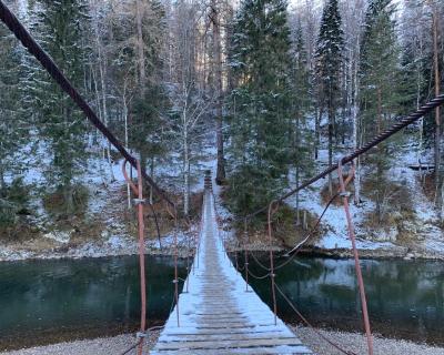 Вы пройдете по самому красивому зимнему маршруту парка, через укутанный снежными шапками лес, тихо журчащую подо льдом реку Серга и причудливые скалы. Увидите карстовые провалы, встретите «Ангела Единой Надежды» и исследуете пещеру «Дружба», гроты которой зимой украшены кристаллами льда и огромными сосульками — сталагмитами. А также осмотрите пещеру «Стоянка древнего человека», где тысячи лет назад охотники на бизонов и шерстистых носорогов жарили на костре мясо.